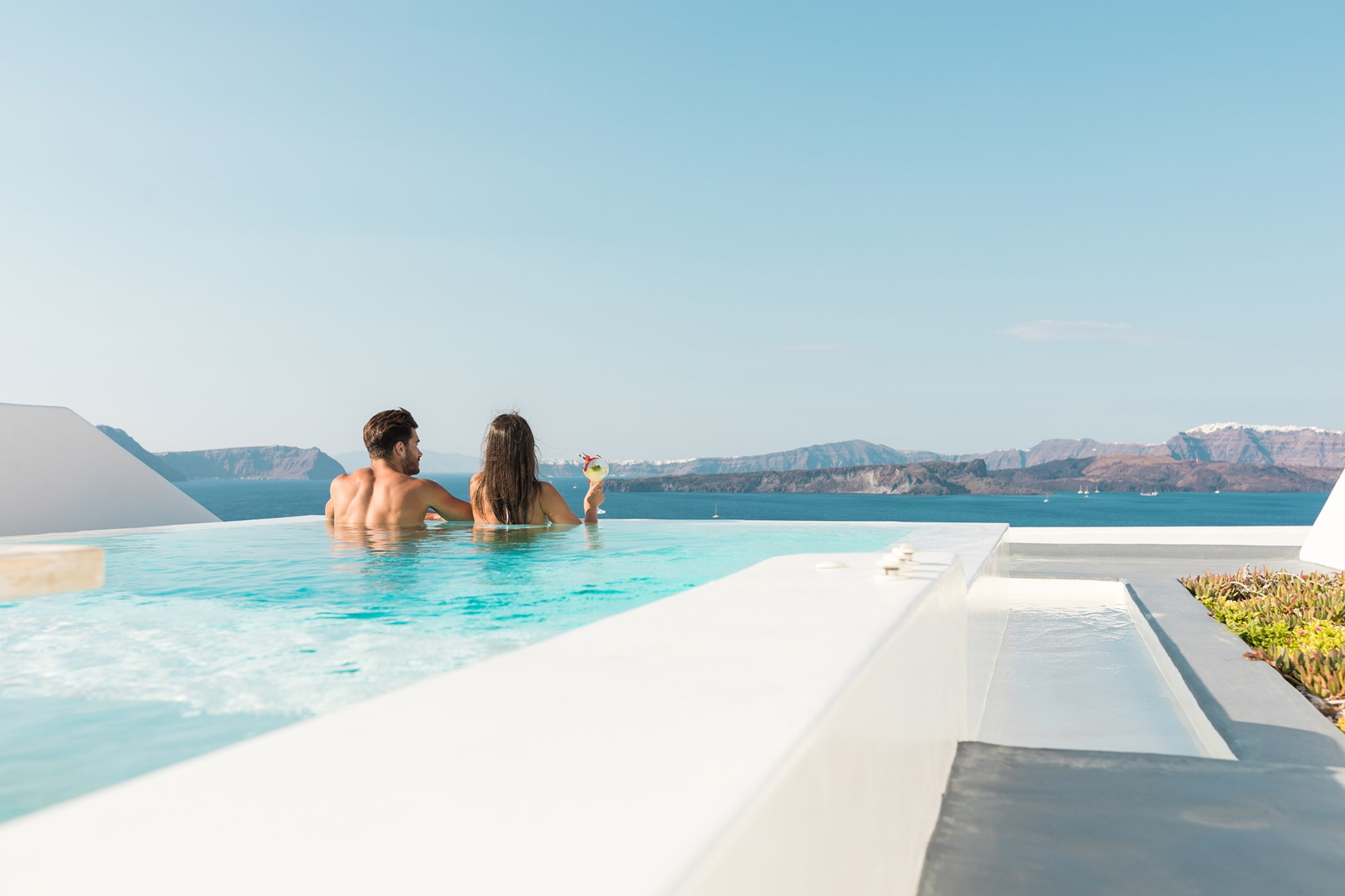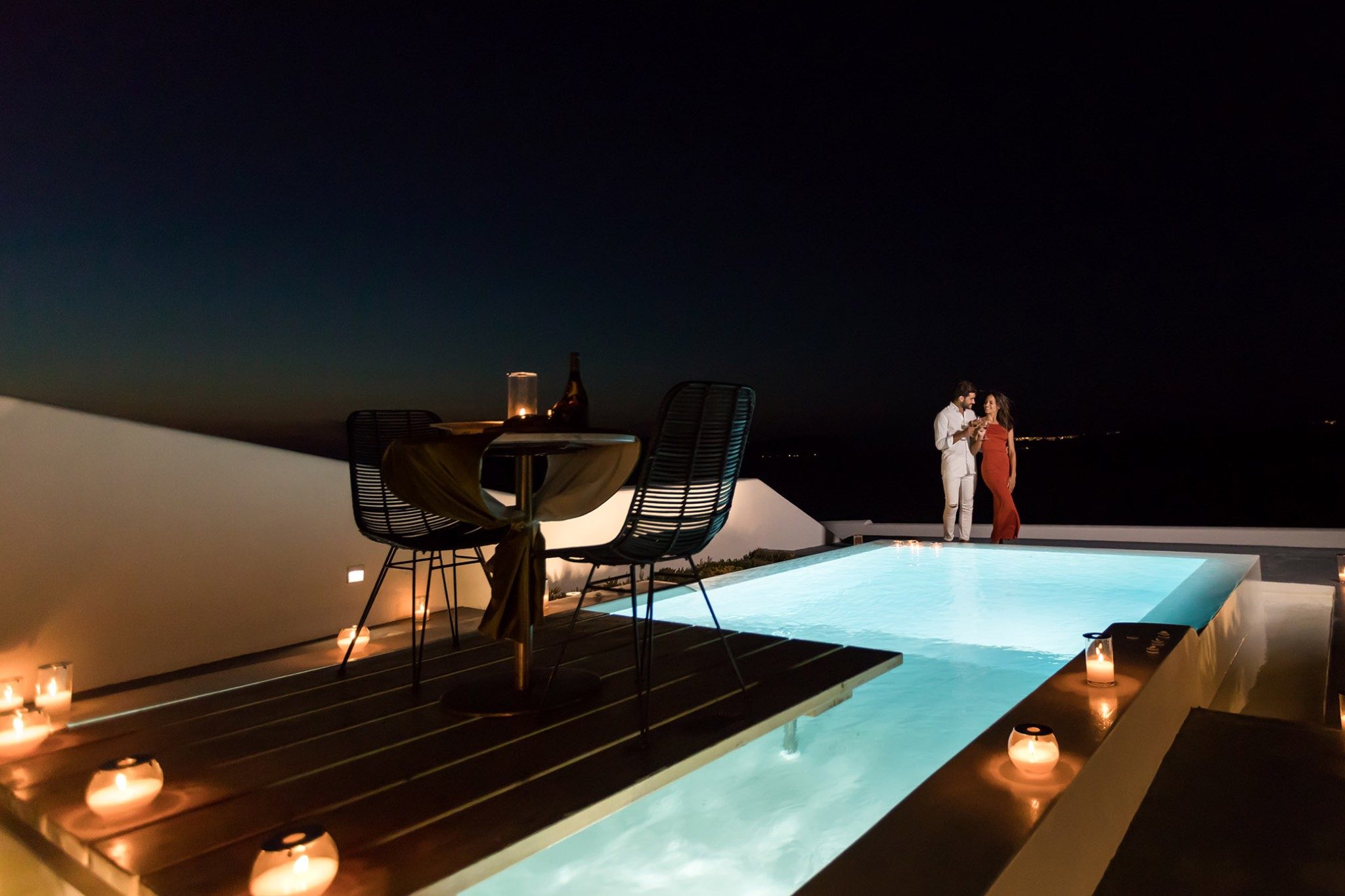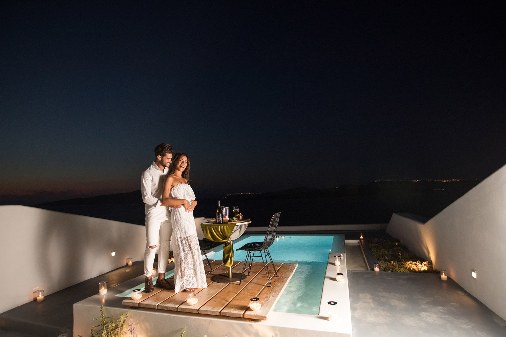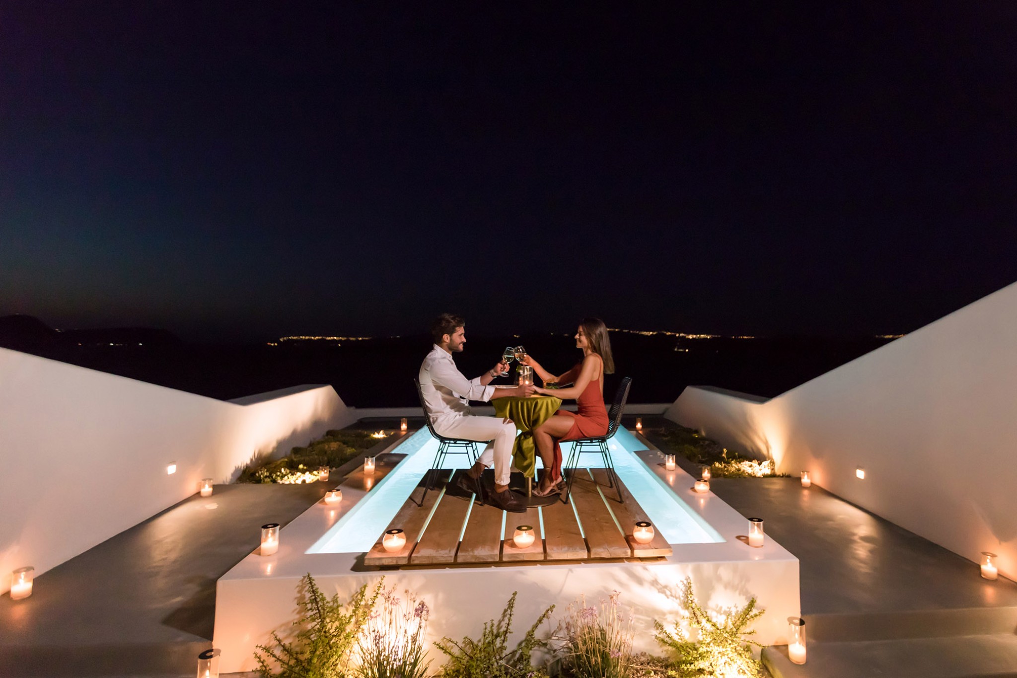 On top of that, you will be served in a mesmerizing setting, on the private terrace of your suite or villa by the pool, where you will gaze at a breathtaking vista of the volcano and the caldera – a view to match the fervid gastronomic creations of our chef. Bon Appétit!